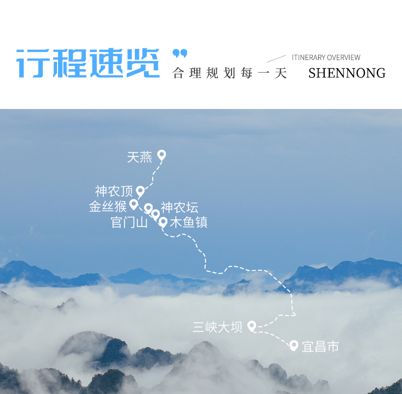 串联三峡大坝、神农架之巅、官门山、天燕景区等