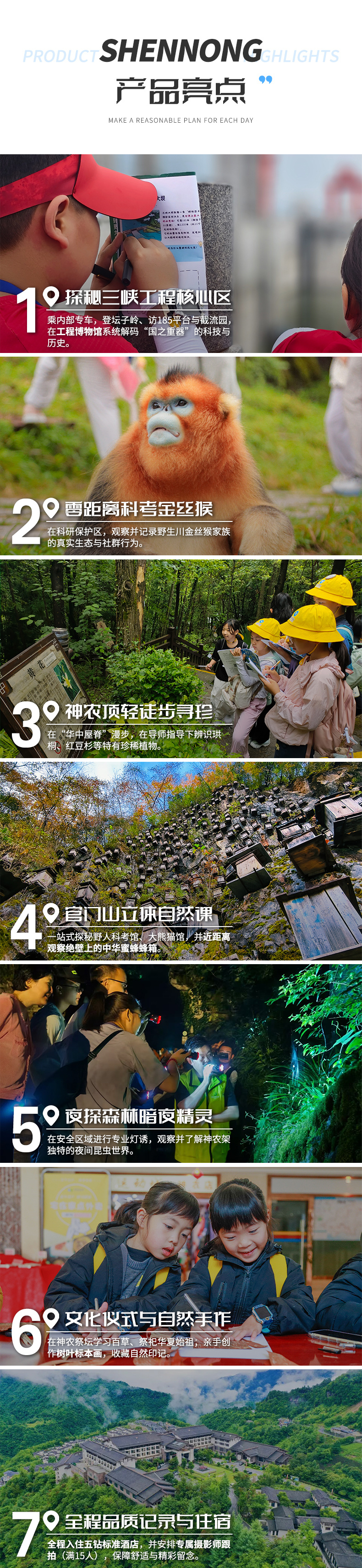 在专业指引下近距离观察金丝猴、夜诱昆虫、探秘岩壁蜂巢、神农顶轻徒步等。
